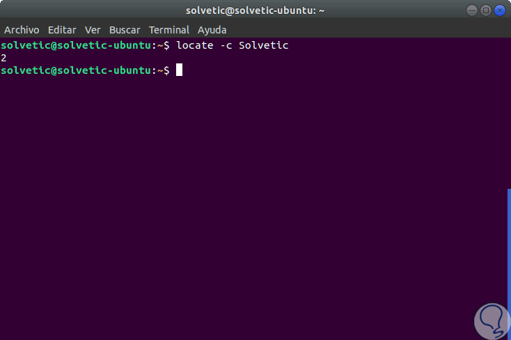 El comando locate está en la capacidad de desplegar cuántas veces coincide una palabra clave de búsqueda en la base de datos, para ello, vamos a usar el parámetro -c en el comando, donde -c es igual a conteo: