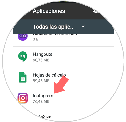 Aparecerá un listado con todas las aplicaciones instaladas en tu teléfono. Busca la aplicación de Instagram y pulsa sobre ella.