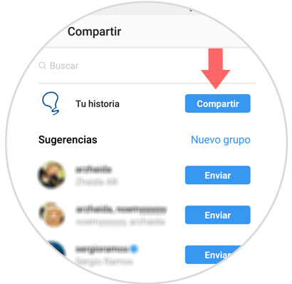 Para publicarlo para todos tus usuarios pulsa en “Compartir” en tu historia y “Listo”. También puedes seleccionar un usuario en concreto para que no se publique para todos y compartirlo únicamente con él.