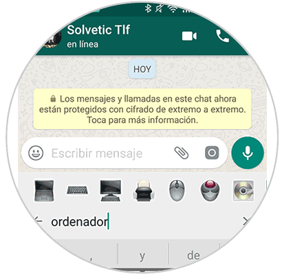 Ahora va a aparecer un buscador en el chat. Tenemos que escribir aquella palabra que haga referencia al emoji que queremos buscar para obtener resultados de búsqueda relacionados.