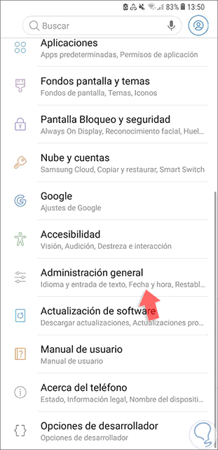 Desplazamos el panel principal y entramos en “Ajustes” / Administración general.