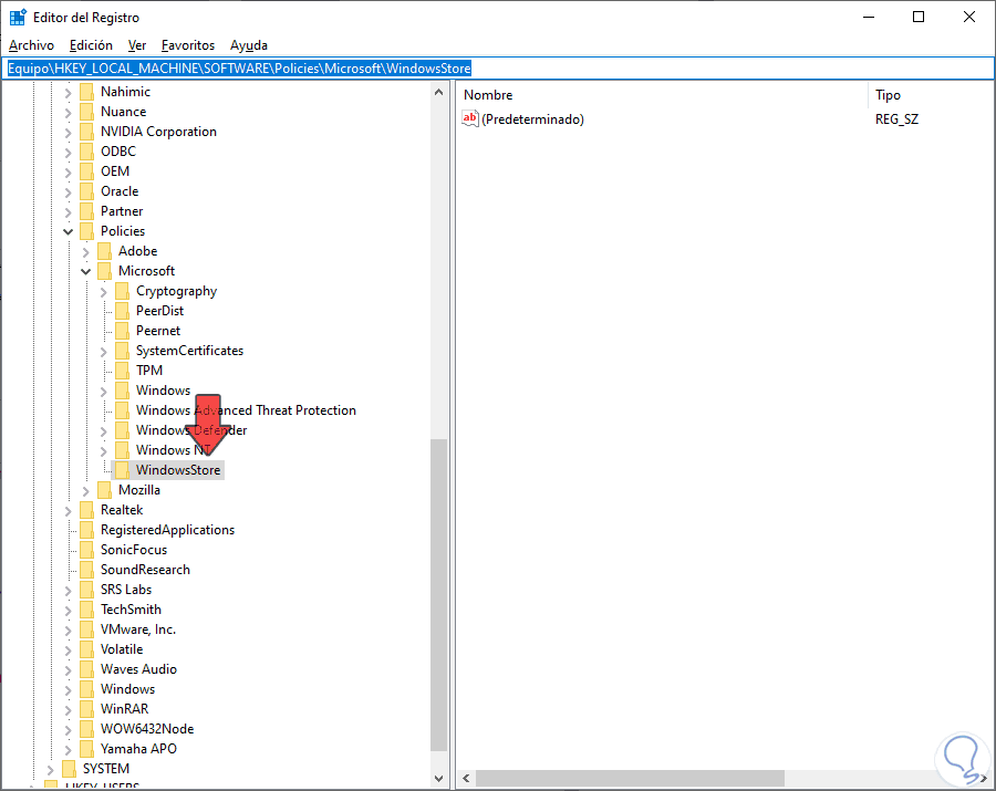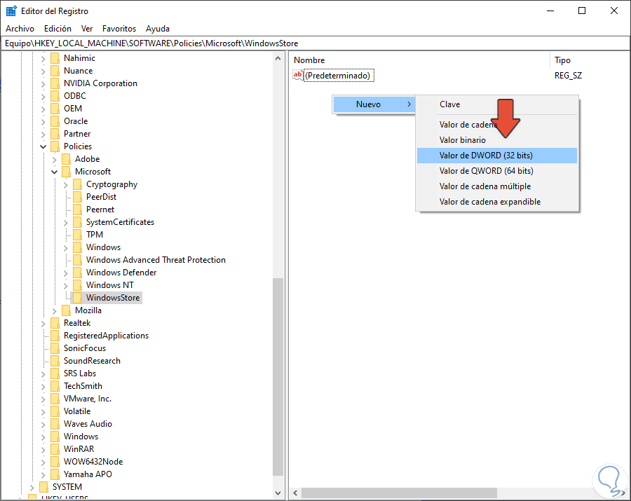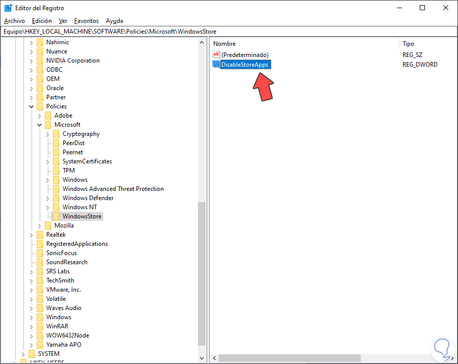 Ahora a este valor nuevo dale de nombre "DisableStoreApps"