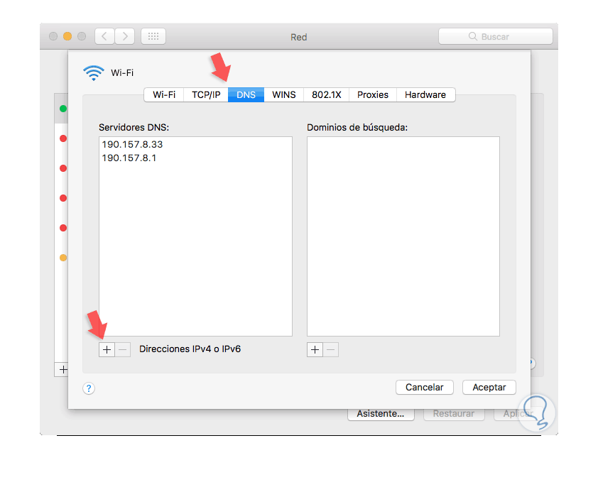 Allí pulsamos en el botón “Avanzado” y luego vamos a la pestaña “DNS”: