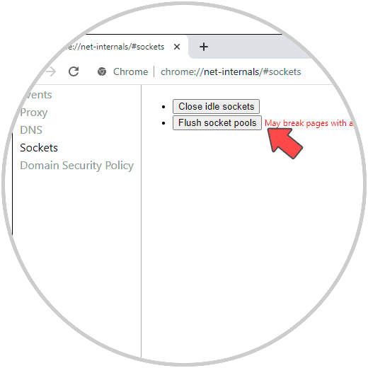 A veces puede ser necesario limpiar la caché de sockets y para ello ejecutaremos lo siguiente en la barra de dirección: