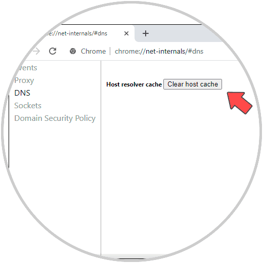 Aquí veremos la siguiente ventana donde pulsaremos en "Clear host cache" para eliminar la caché de DNS y resolver el error dns probe finished nxdomain.