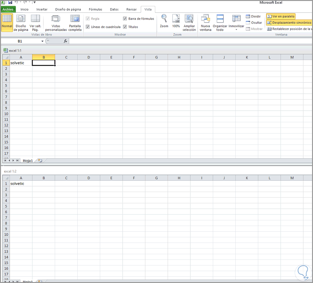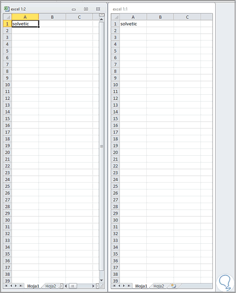 En la segunda hoja selecciona la “Hoja 2” y podrás ver las dos hojas de Excel situadas una junto a la otra.
