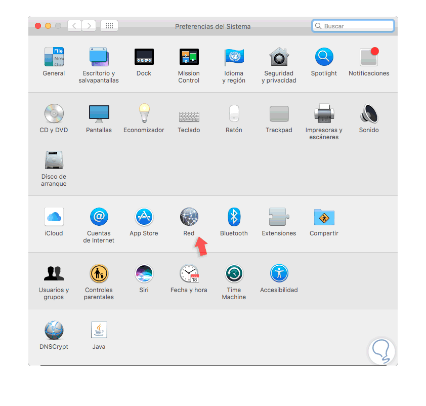 Para el caso de macOS High Sierra, vamos a “Preferencias” y seleccionamos la opción “Red”:
