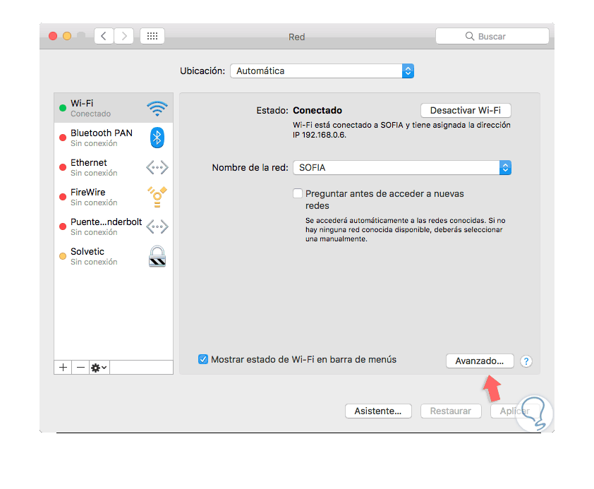 En la ventana desplegada vamos a la sección “Wi-Fi” y allí pulsamos en el botón “Avanzado”: