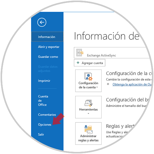 En la ventana de "Opciones" vamos a la sección "Complementos":