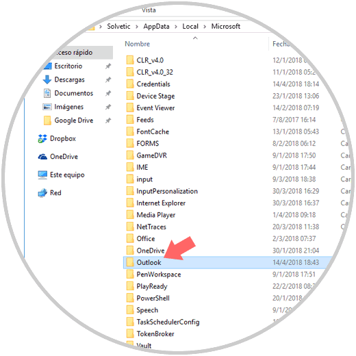 7. Borrar la carpeta de Outlook de AppData para solucionar Outlook no abre en Windows 10