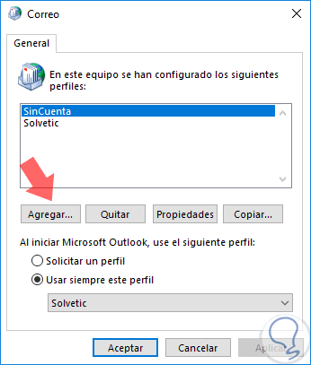 11. Crear un nuevo perfil para solucionar Outlook no abre en Windows 10