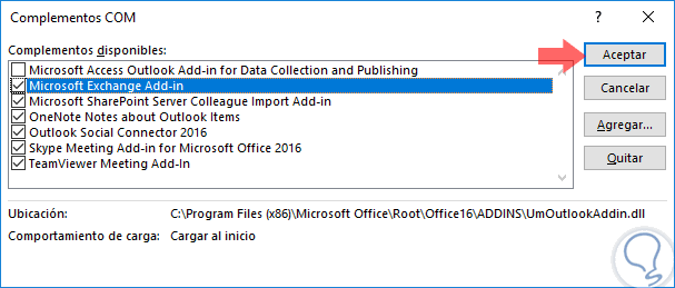 Cuando los complementos esten deshabilitados, debemos iniciar Outlook nuevamente y habilitar los complementos uno por uno hasta que detectar la causa del problema. Para ello usaremos de nuevo la combinación de teclas siguiente: