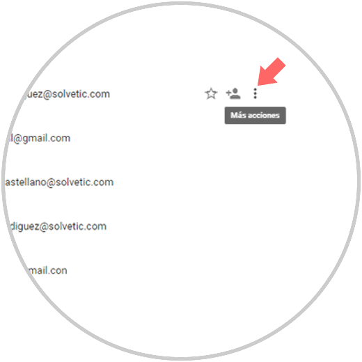 Una vez dentro aparecerán los contactos con mayor intercambio de Mails. Pulsa el icono de los tres puntos verticales.