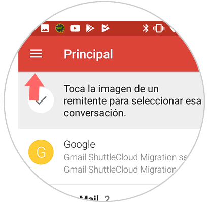 Una vez descargada en tu terminal, entra en la aplicación de Gmail y toca el icono de las tres líneas horizontales situado en la esquina superior izquierda: