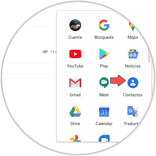 Se desplegará una ventana. Pulsa en “Contactos” dentro de “Google Apps”