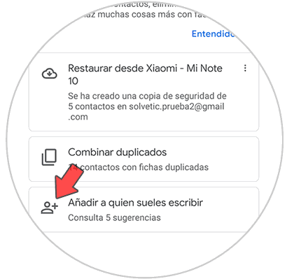 Lo siguiente que debes hacer es entrar en el apartado "Añadir a quien sueles escribir"