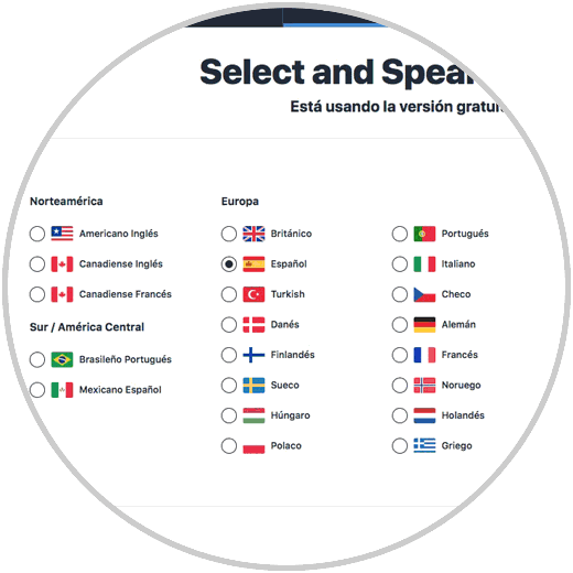 Además también podemos seleccionar el idioma en el que queremos que el texto sea leído.