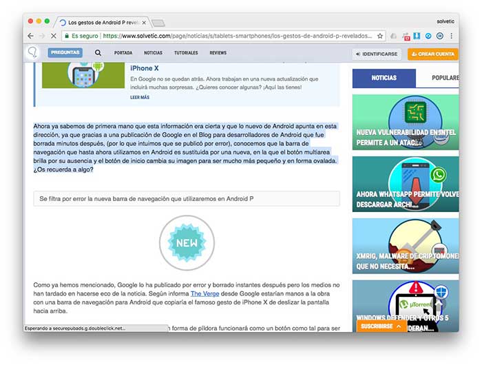 Una vez que tenemos estos ajustes configurados, tenemos que dirigirnos a aquella web que queremos que sea leída en voz alta. Seleccionamos el texto que queremos escuchar.