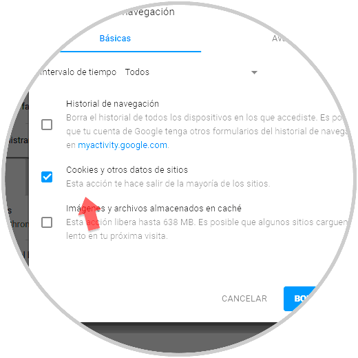 5. Borrar la caché y las cookies de Chrome para resolver error ERR_CONNECTION_REFUSED