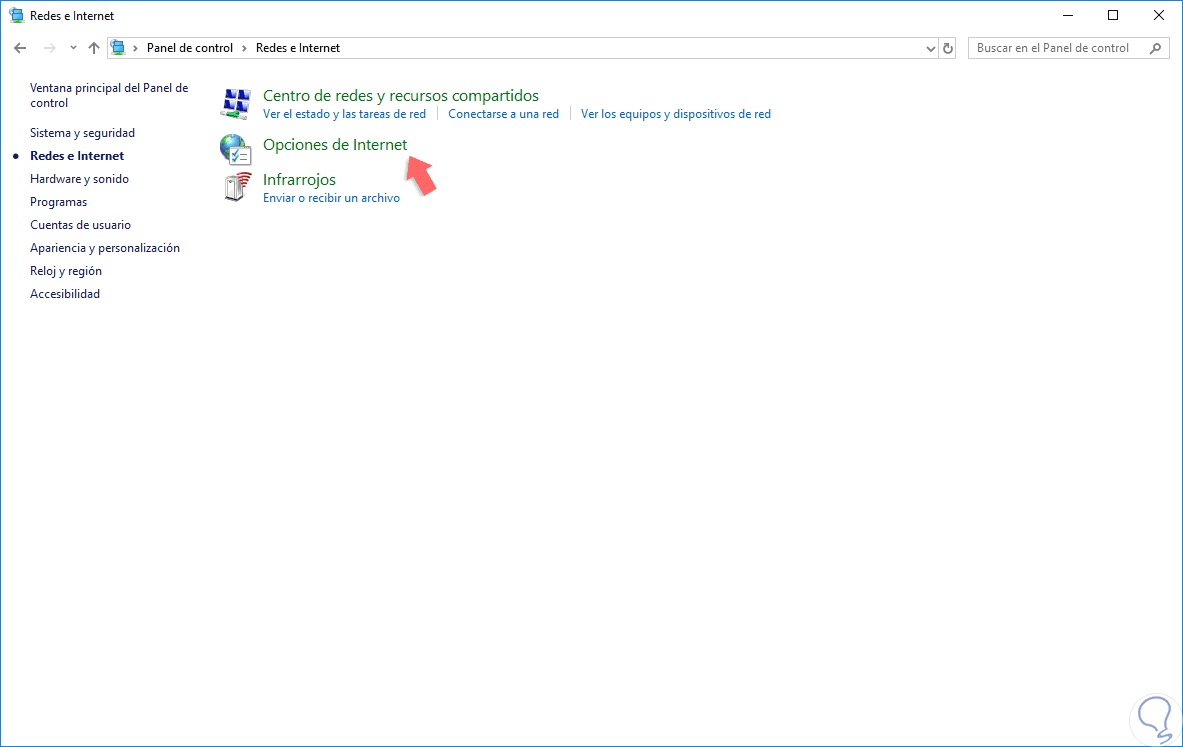 Allí seleccionamos la sección “Opciones de Internet” y será desplegada la siguiente ventana e iremos a la pestaña “Conexiones”: