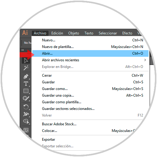 Abrimos Illustrator y nos dirigimos a “Archivo / Abrir”.