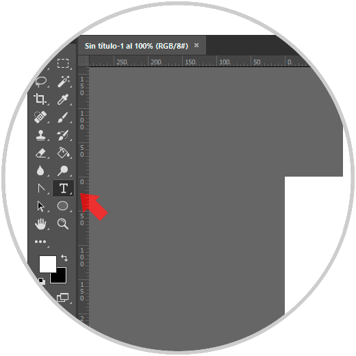 Lo primero será abrir Photoshop y cerrar todos los proyectos que tengamos abiertos para evitar tener ventanas abiertas. Hecho texto nos vamos a la herramienta de selección de Texto del panel de Herramientas.