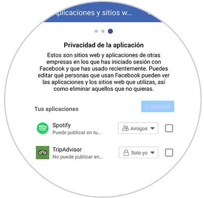 Dentro del último apartado, podrás ver las web y aplicaciones en los que has iniciado sesión con tu cuenta. En el caso de quieras eliminar alguno, selecciona y pulsa en "eliminar"