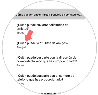 Si nos desplazamos hacia abajo, veremos un apartado en el que pone "Cómo pueden encontrarte y ponerse en contacto contigo" . Aquí verás que una de las preguntas es ¿Quién puede ver tu lista de amigos?