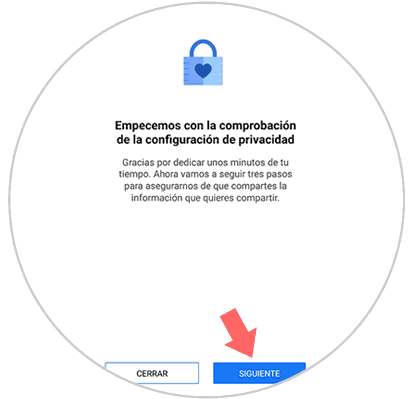 A continuación verás que aparece una nueva pantalla, en la que debes seleccionar "siguiente" para comenzar con la comprobación de la privacidad.