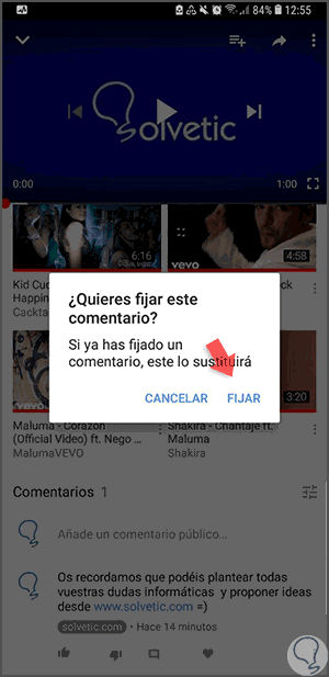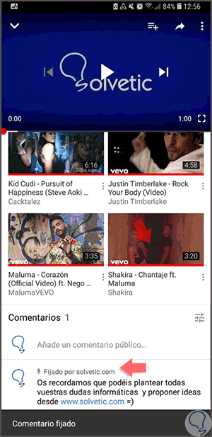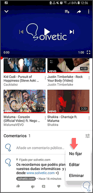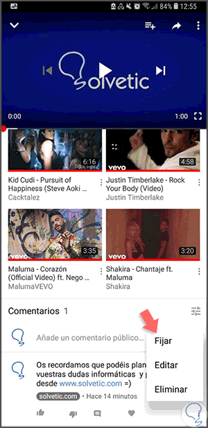 2. Poner o quitar comentario fijo YouTube en la parte de arriba en móvil