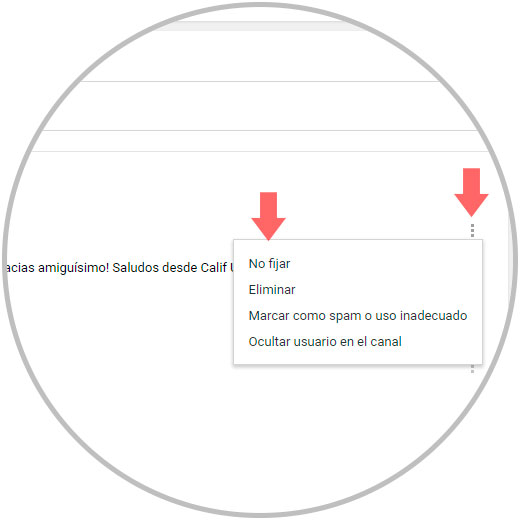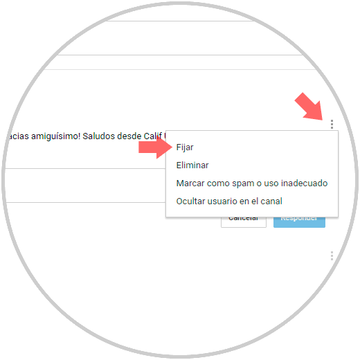 Seleccionamos el comentario que queremos fijar dando en el menú de despliegue de los tres puntos y presionamos en “Fijar”.