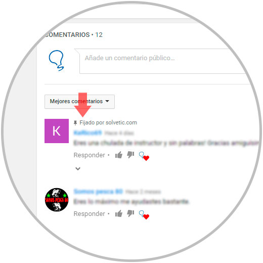 Desde aquí elegimos el vídeo que contiene el comentario que queremos fijar.