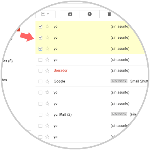 Aparecerás en la bandeja de entrada de Gmail. Selecciona los correos que quieres archivar pulsando sobre ellos y quedarán marcados con un check gris.
