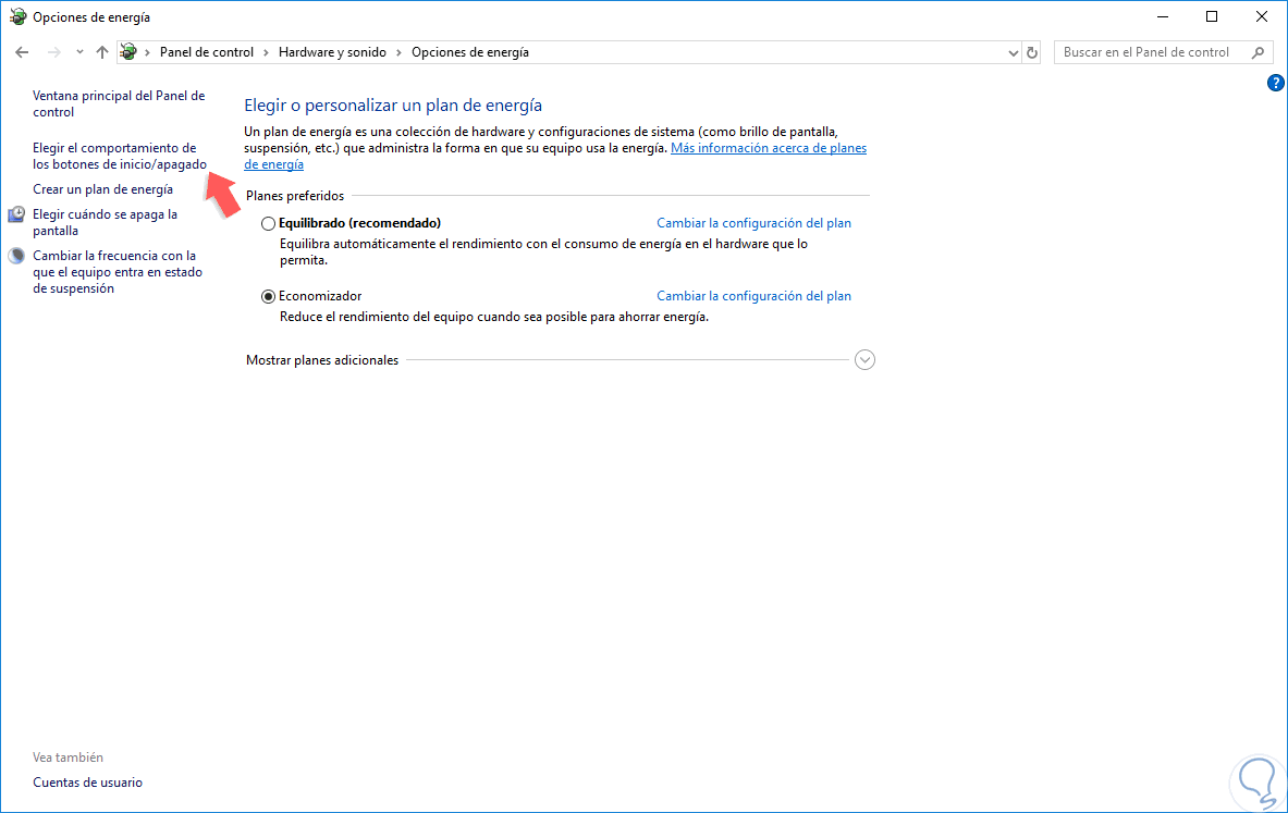 Damos clic en la línea “Elegir el comportamiento de los botones de inicio/apagado” en el extremo izquierdo y veremos lo siguiente: