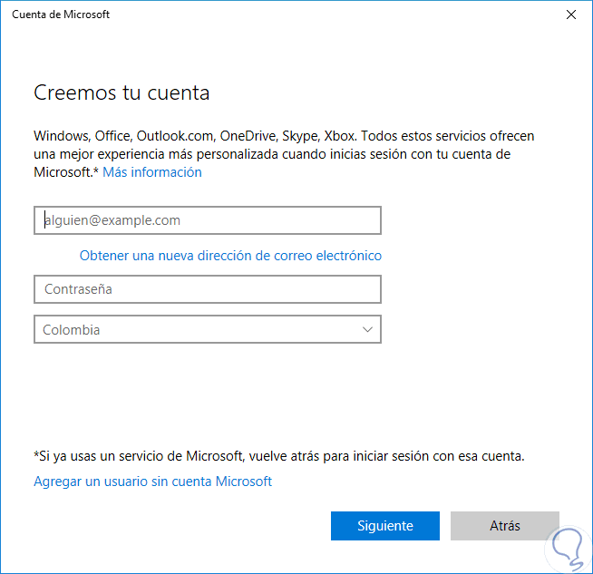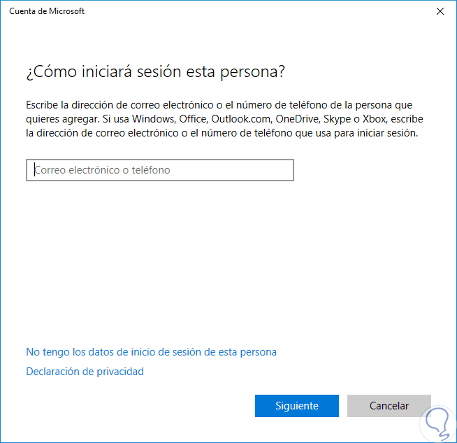 Pulsamos en la línea “No tengo los datos de inicio de sesión de esta persona” y veremos la siguiente ventana: