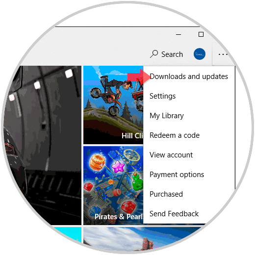 Para actualizar la tienda de Windows 10, accedemos a la tienda y allí pulsamos en el icono de menú ubicado en la parte superior derecha y allí seleccionamos la opción “Download and updates”: