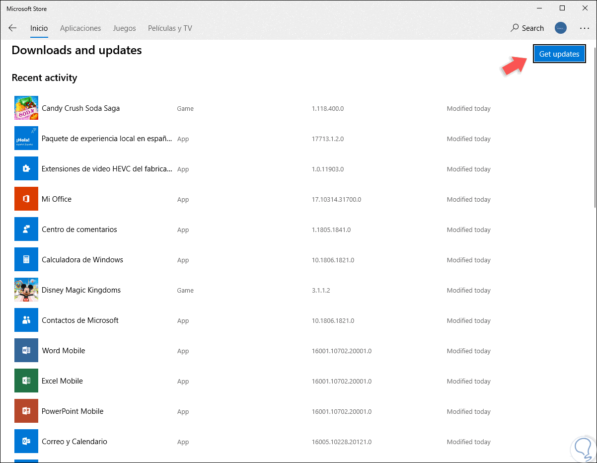 Será desplegado lo siguiente. Pulsamos en el botón “Get updates” para actualizar la tienda.