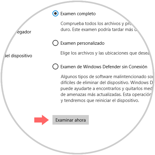 Si contamos con algún software de antivirus es ideal ejecutar un análisis completo y si no lo tenemos, podemos ir al Centro de seguridad de Windows Defender y allí, en la sección “Protección antivirus y contra amenazas” seleccionar la opción “Examen completo”. Pulsamos en el botón “Examinar ahora” para iniciar el análisis detallado.