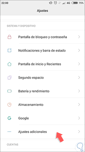 Abrimos el panel de Ajustes desde nuestro menú principal. Aquí elegiremos “Ajustes adicionales”.