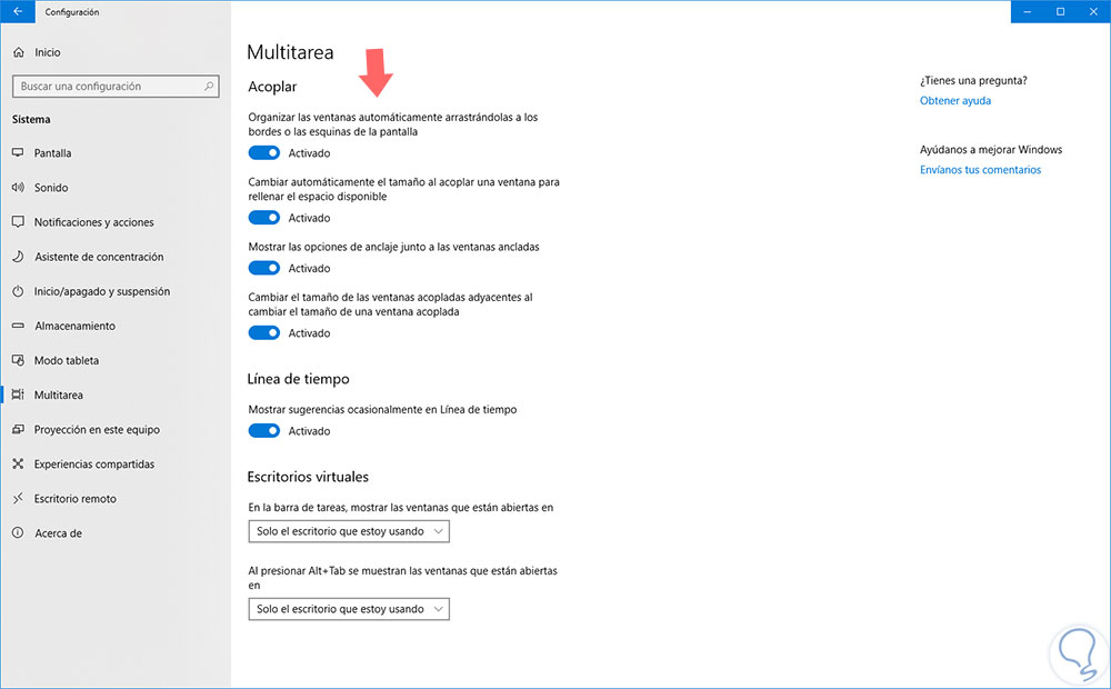 Una de estas funcionalidades prácticas la hemos visto implementada desde Windows 7 y es la capacidad de ejecutar múltiples aplicaciones a la vez y acceder a ellas de una forma muy simple dando como resultado una multitarea más útil.En Windows 7 esta función recibió el llamado Aero Snap y Windows 10 ha añadido un mayor potencial a esta función dándonos la oportunidad de contar con un mejor soporte para pantallas de una mayor resolución o cuando usamos dos o más monitores. Es por esto que hoy en Solvetic vamos a ver como dividir nuestra pantalla en Windows 10 con asistencia de pantalla dividida