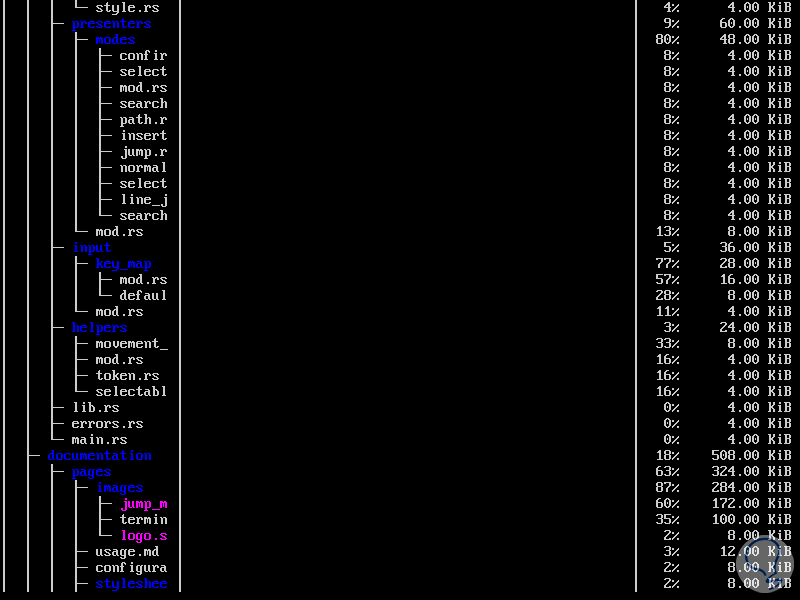 Una de las ventajas de Dutree es que, en lugar de mostrar solo la raíz de los archivos con su respectivo tamaño, o los detalles de cada archivo, solo desplegara las rutas que ocupan más espacio enfocándose solo en este aspecto.