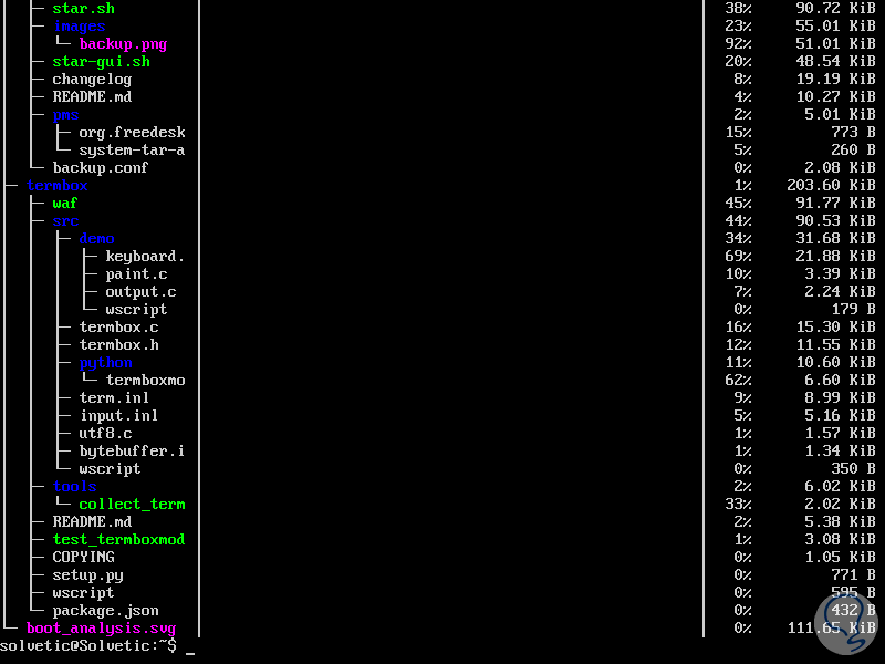 Después de instalar Dutree en el sistema, podemos usar los colores del entorno según la variable LS_COLORS, la cual cuenta con los mismos colores que el comando ls --color los cuales la distribución ha configurado: