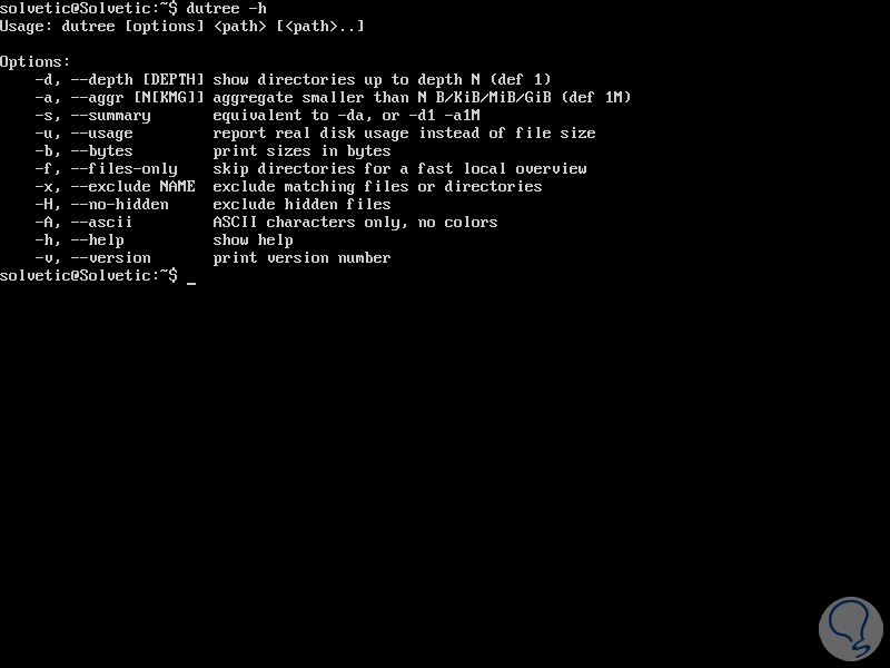 Finalmente, si deseamos ver la ayuda de Dutree vamos a ejecutar lo siguiente: