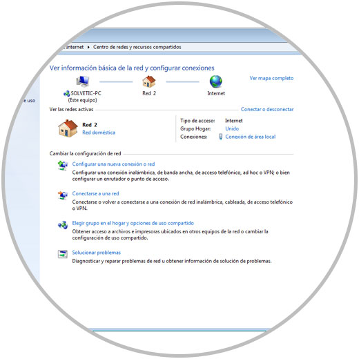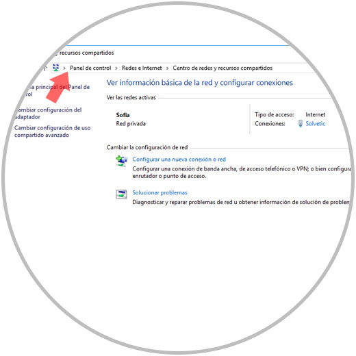 Allí seremos redireccionados a la siguiente ventana: Allí daremos clic en la línea "Centro de redes y recursos compartidos".