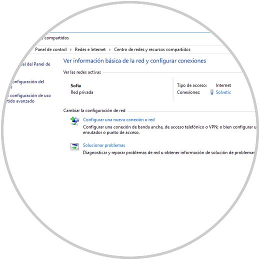 1. Abrir Centro de Redes y recursos compartidos Windows 10