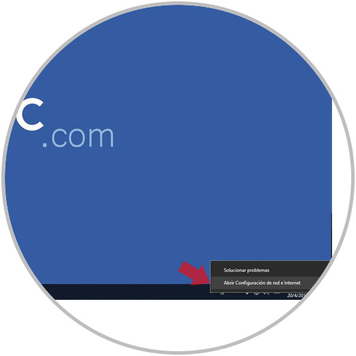 La siguiente opción es dar clic derecho en el icono de red en la barra de tareas y seleccionar la opción "Abrir Configuración de red e Internet":