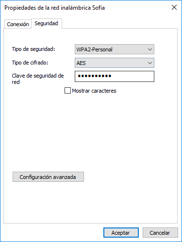 Aquí tenemos acceso a funciones adicionales de la red Wi-Fi tales como tipo de seguridad y podremos ver la clave de red si la hemos olvidado