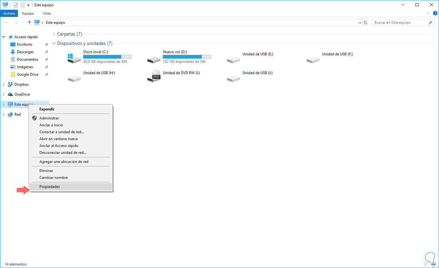 1. Abrir Propiedades del sistema Windows 10 con Este equipo
