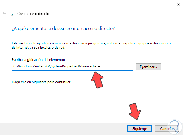 Ahora tendrás que dar un nombre que en este caso será "Propiedades del sistema"