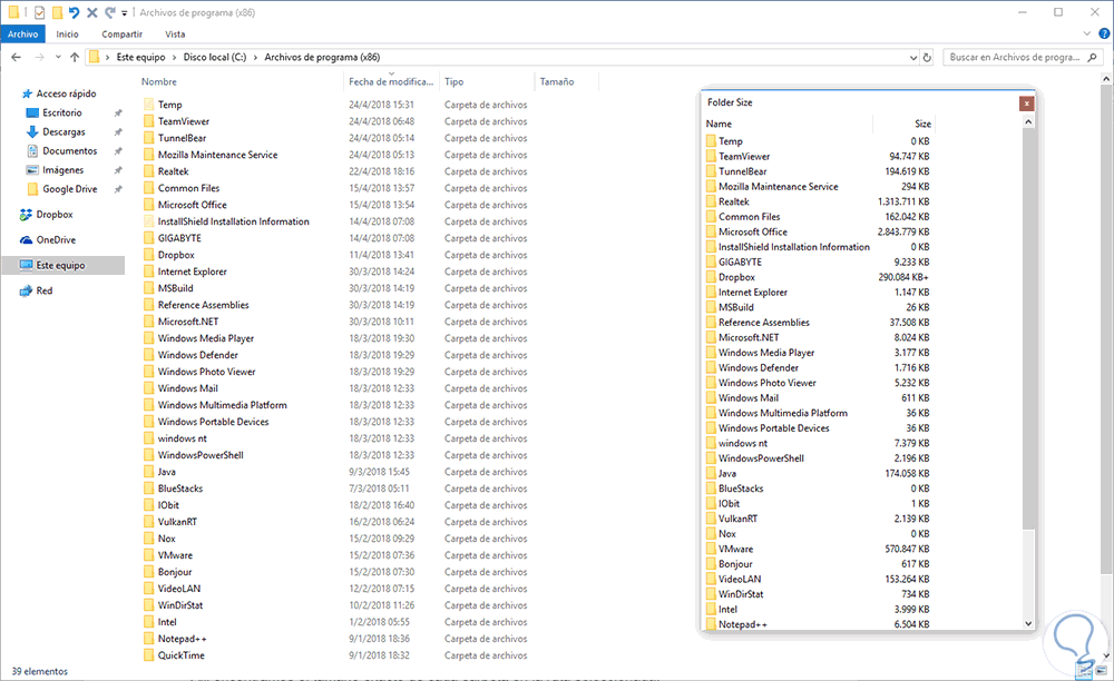 Podemos ver que es simple conocer en detalle el tamaño de cada carpeta en Windows.